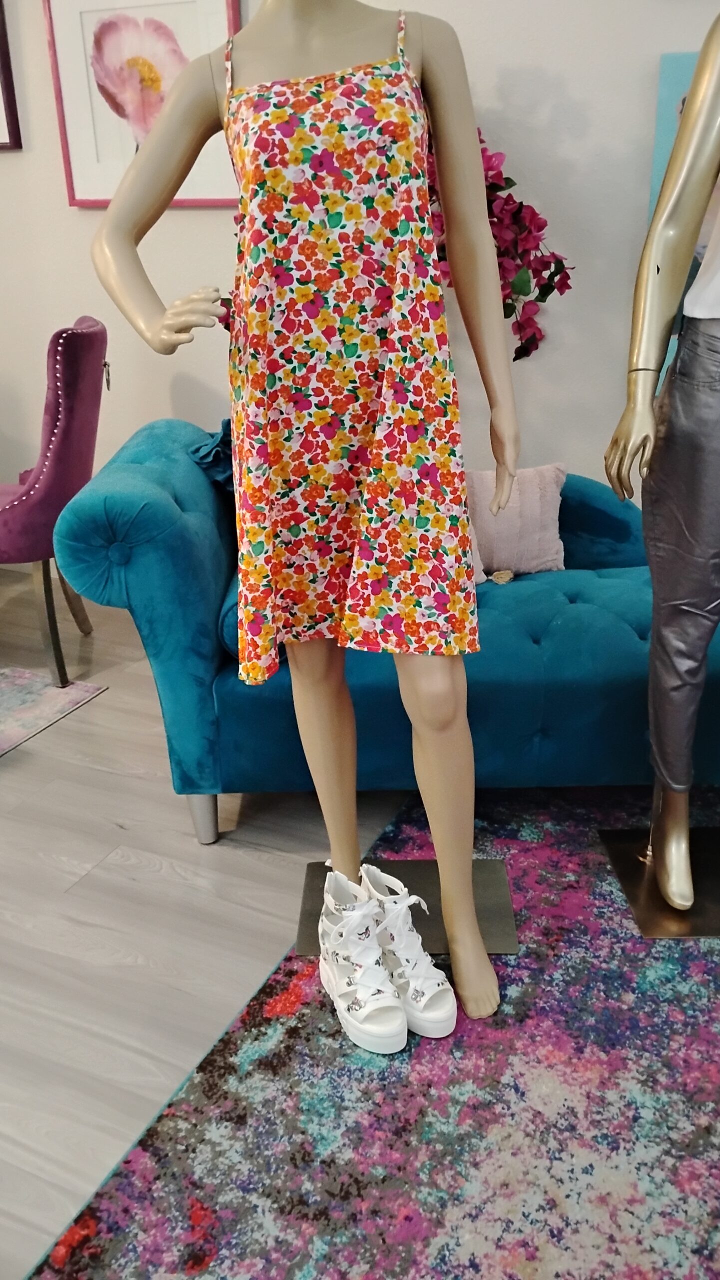 Bright floral sundress with a lightweight feel and relaxed fit. An easy, cheerful style perfect for sunny days and warm weather outings.